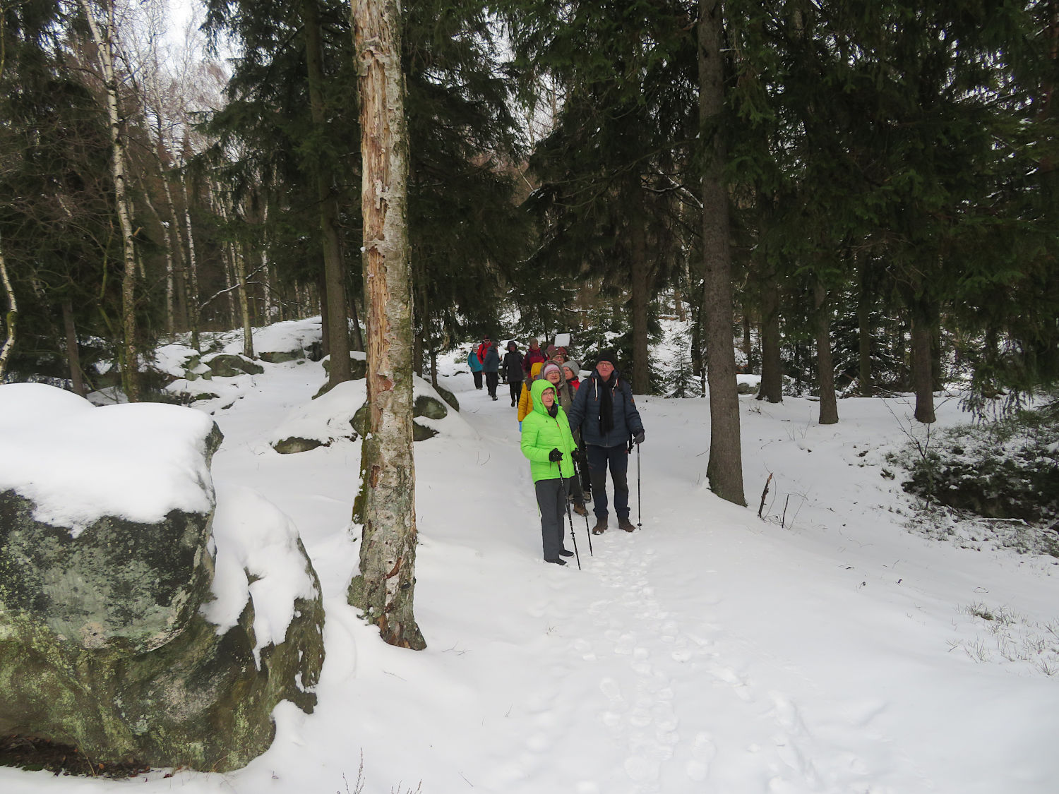 13+1 Wanderer begannen diese schöne Wintertour.