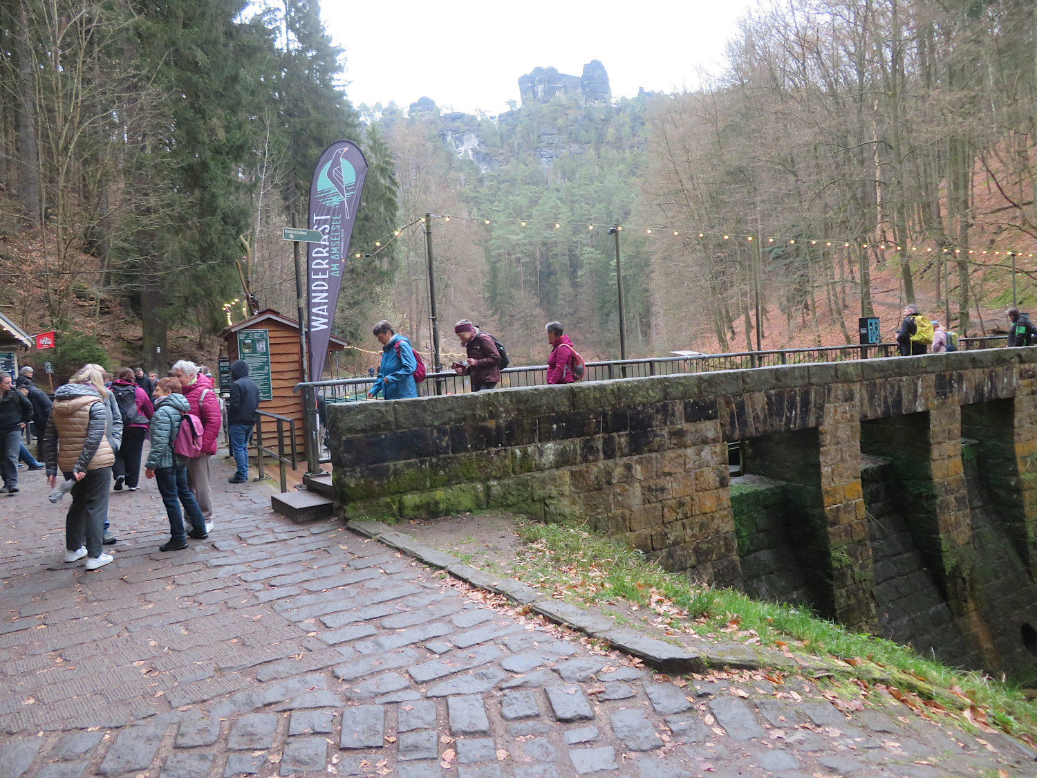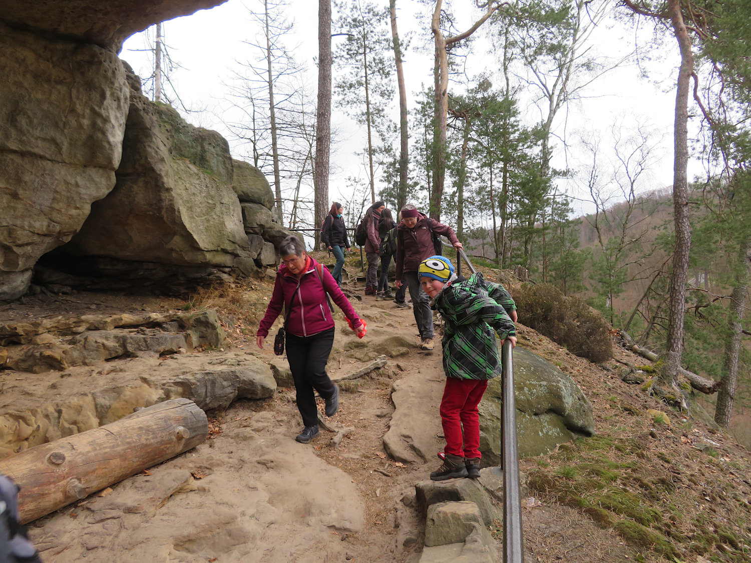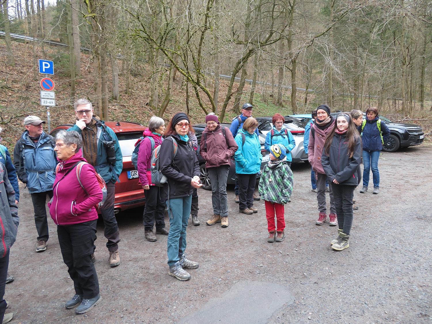 Sammelstart auf dem Wanderparkplatz im Polenztal hinter Hohnstein.