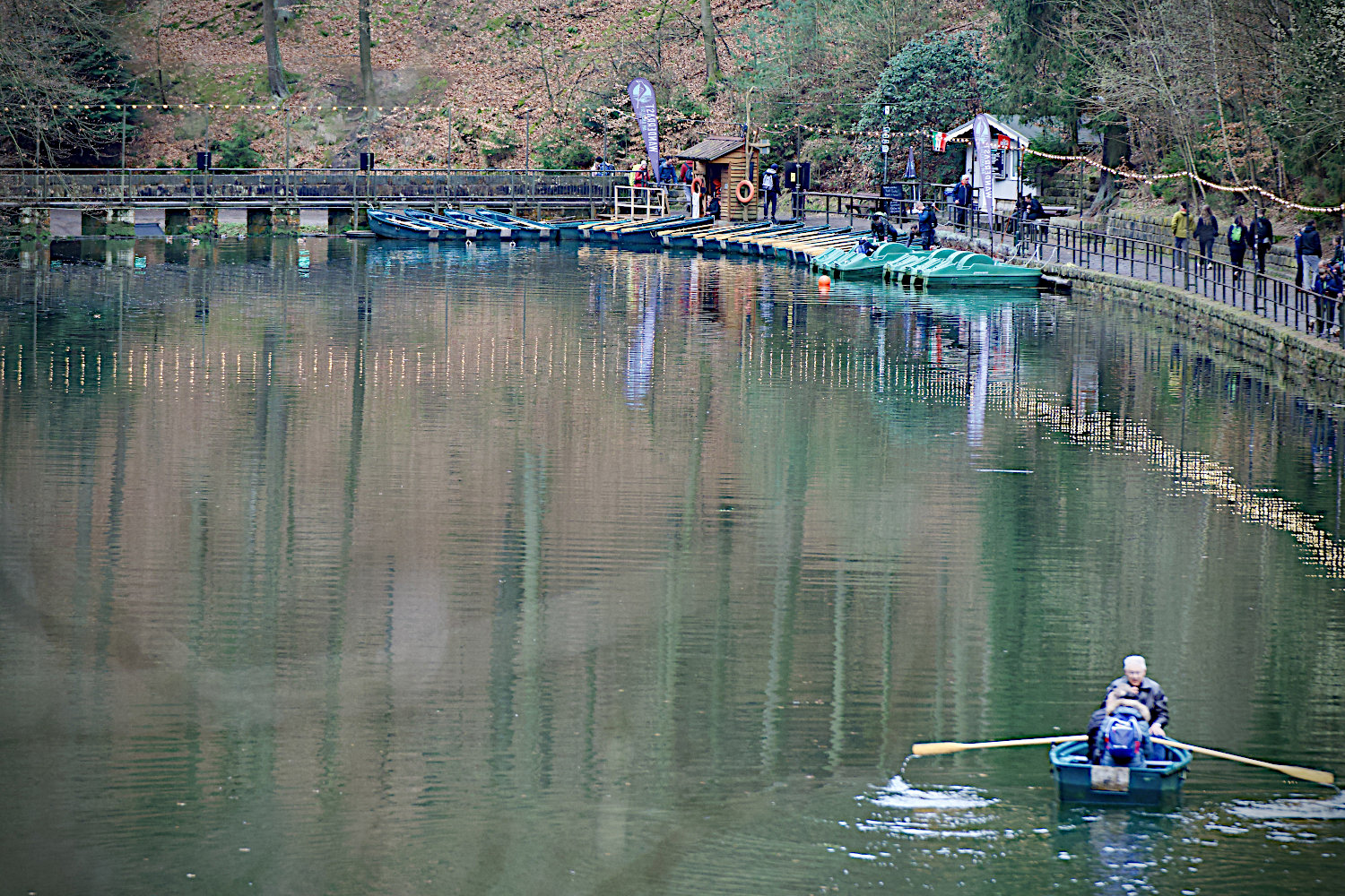 Der Amselsee ist erreicht (leider bei einsetzendem Regen). Über allem wacht die Lokomotive.