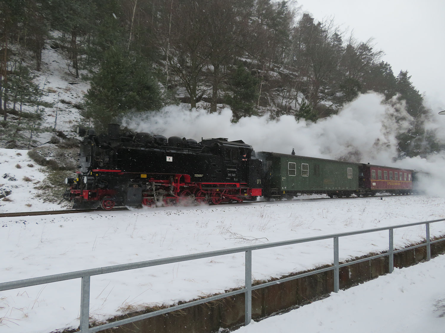 Auf dem Weg zur Teufelsmühle kam uns die Dampfbahn entgegen.