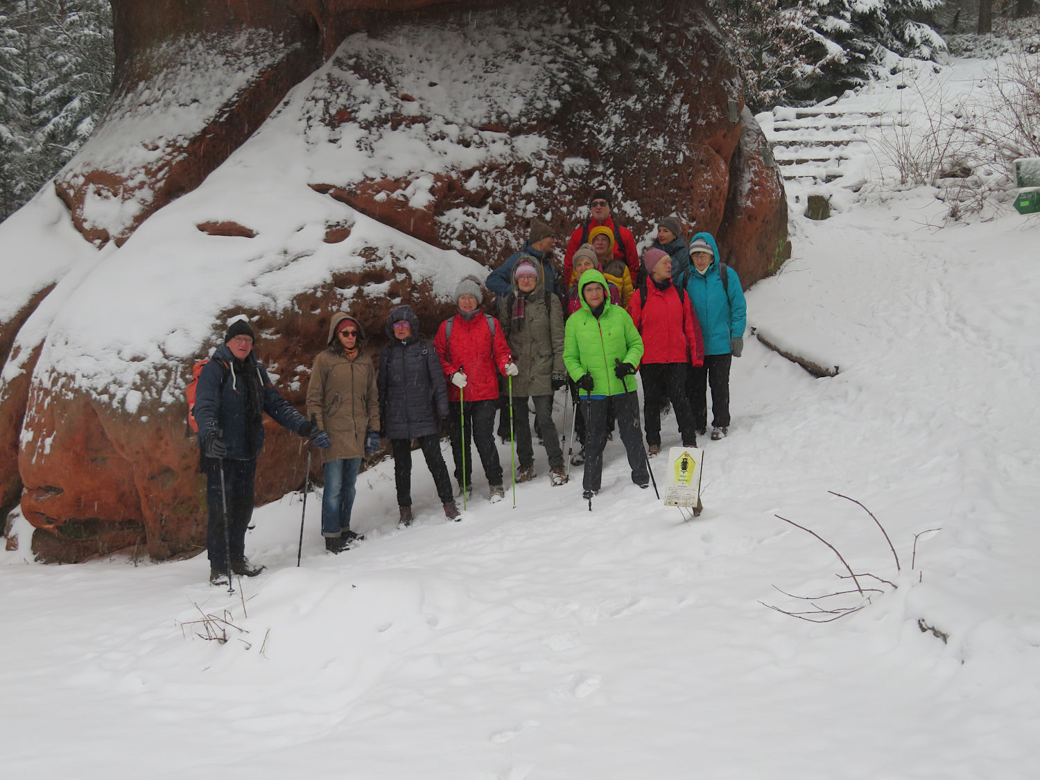 13+1 Wanderer begannen diese schöne Wintertour.